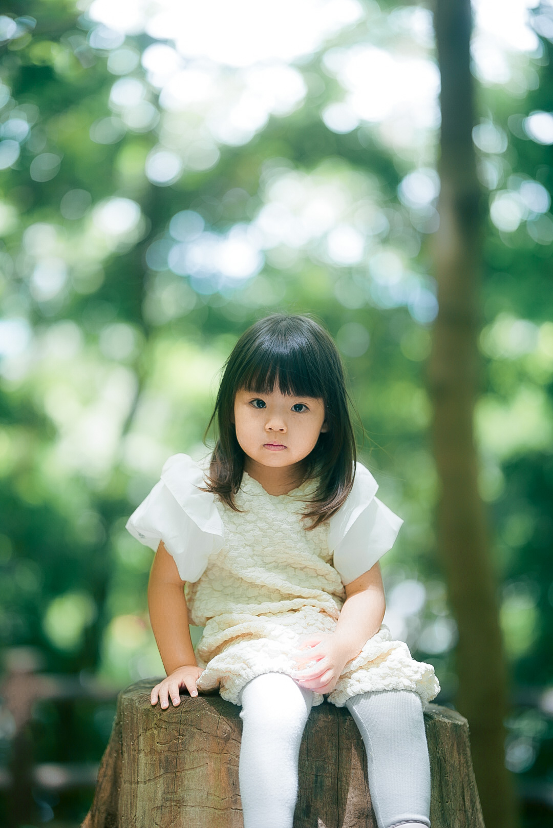 森でお子様の記念撮影